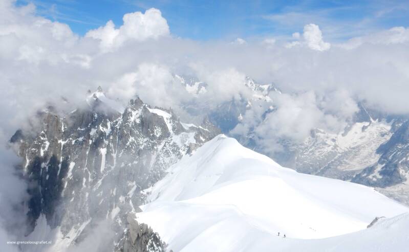 Aiguille du Midi; een bergpiek in de Alpen met uitzicht op de Mont Blanc: 4807 meter hoog.