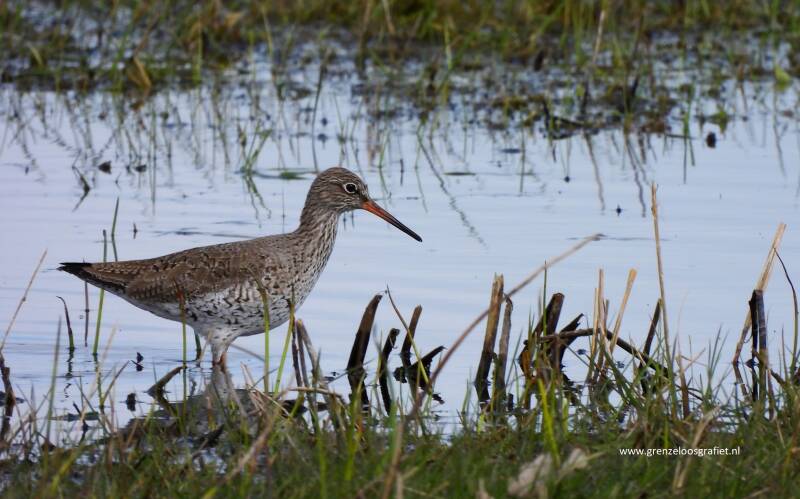 Mannetjes Grutto; herken je aan het felle oranje contrastrijke verenpak. Het vrouwtje is onopvallender / grijzer van kleur.