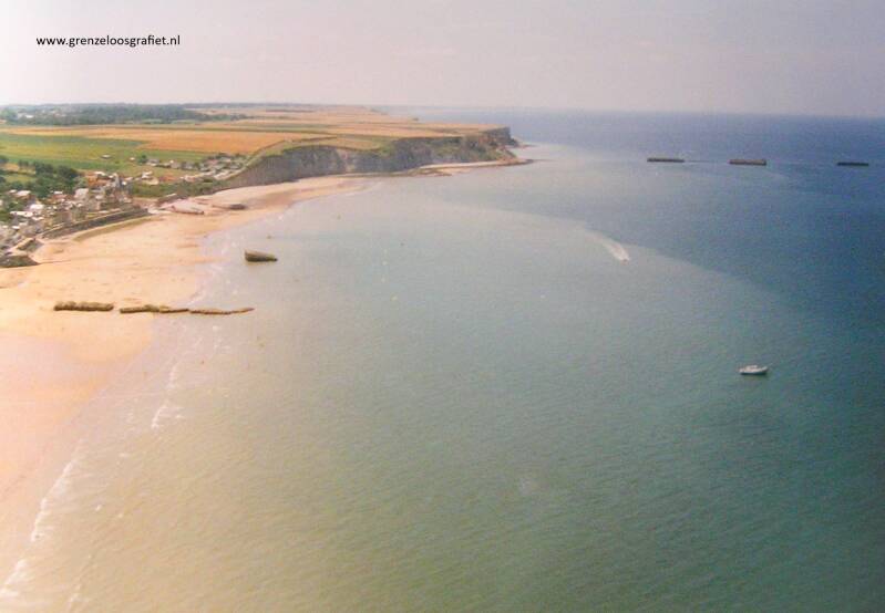 Arromanches met de resten van de haven van D-Day. Eigen Foto 1986.