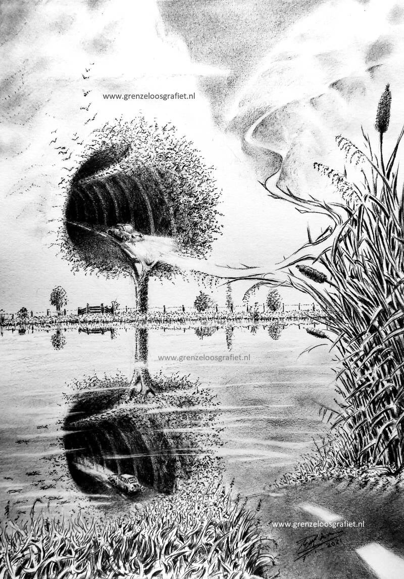 De spiegeling in het water van de boom van het afgelopen jaar...