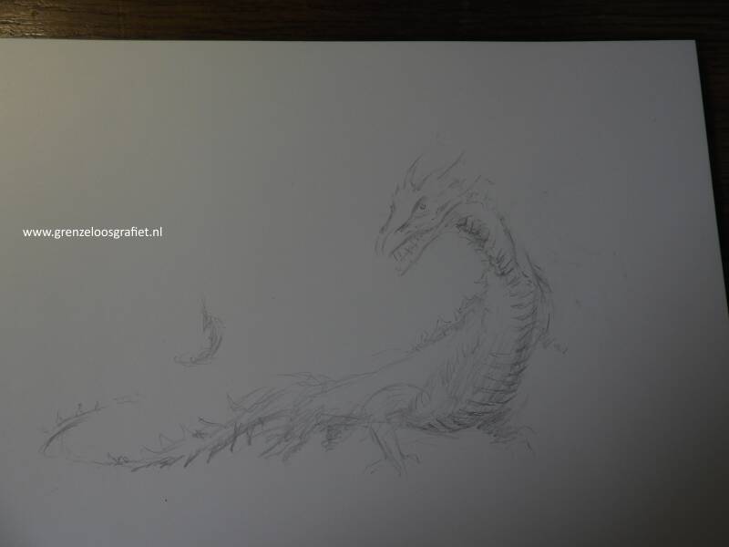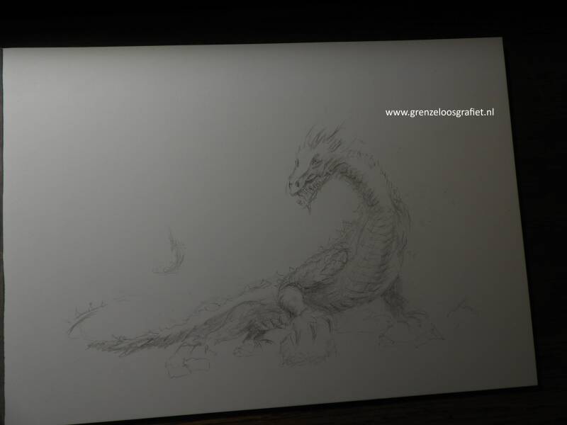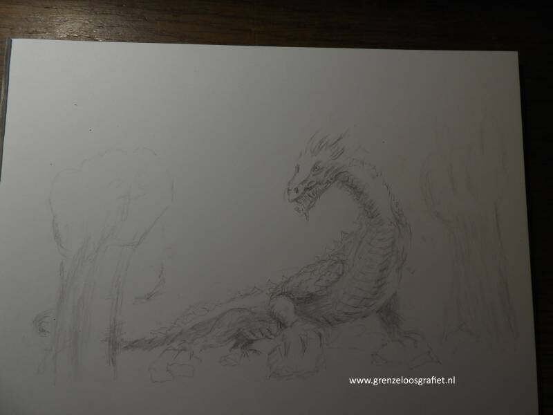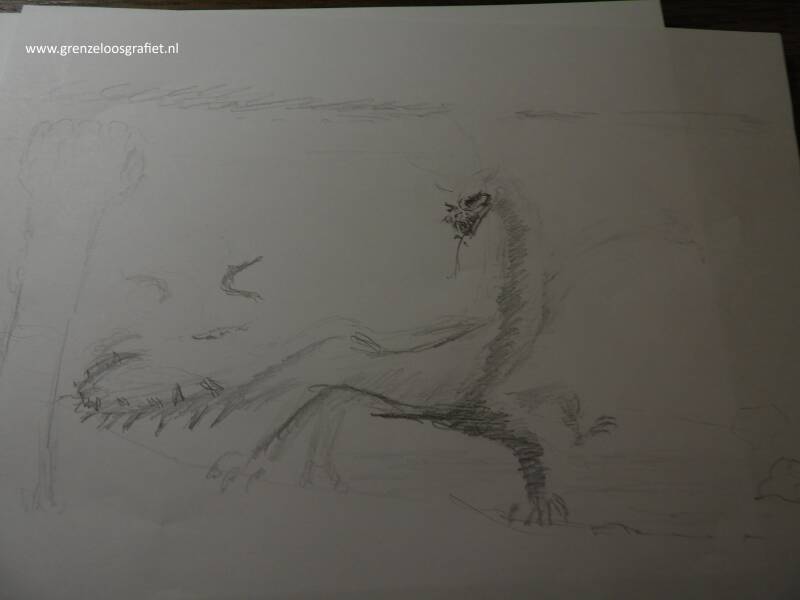 In de tekening drie "Draak achtige vogels" getekend, gebaseerd op de Rode Wouw die ik daar zag vliegen.