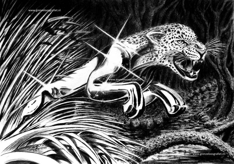De supermooie stroomlijn van het jaguar logo, was uitgangspunt voor deze tekening.
