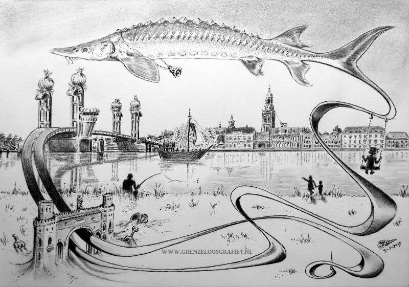 Vingen hiervoor een uitzonderlijk grote Steur uit de IJssel.