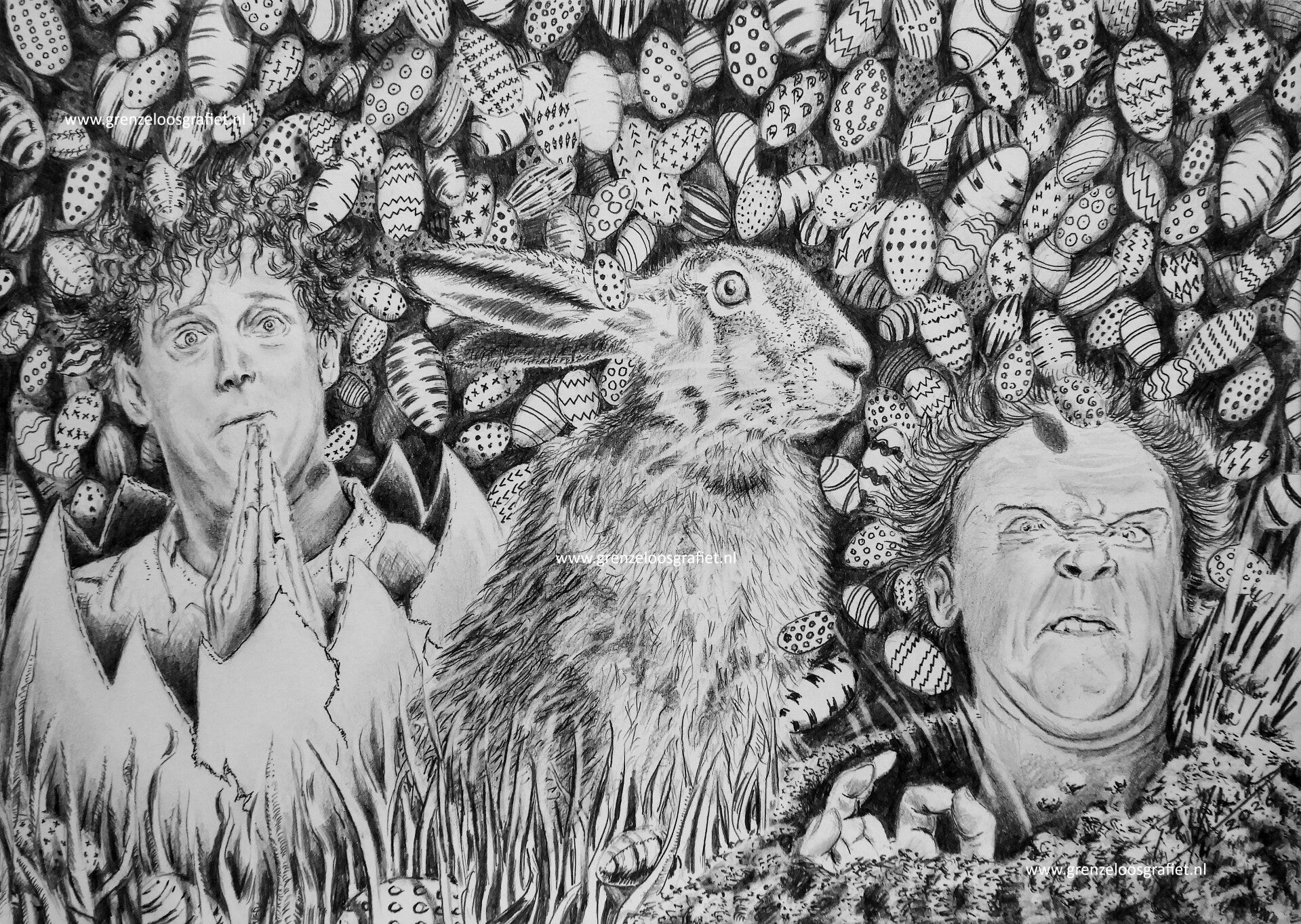 Het was deze haas, die me aanzette tot deze tekening! Arme Ziel....