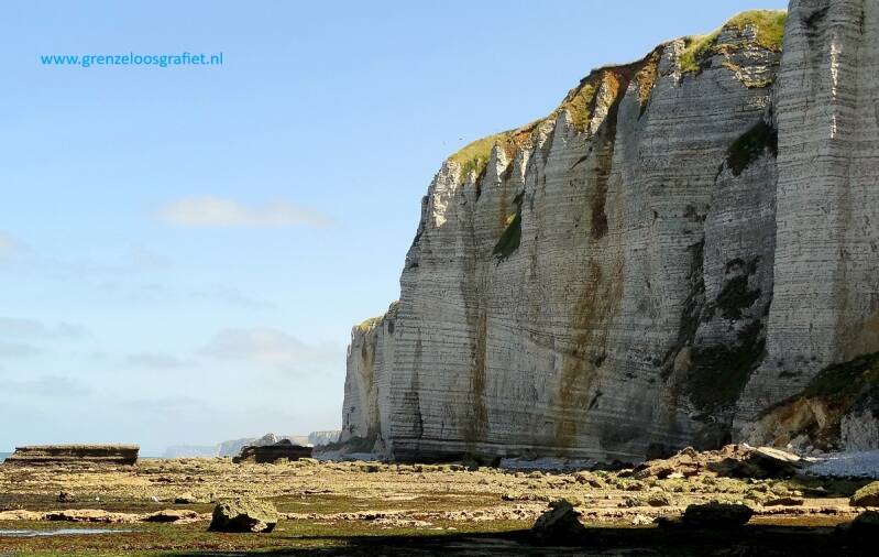 De rotsen die hier ruim 70 meter boven de zee uit torenen zijn ontstaan in: " Het Krijt."